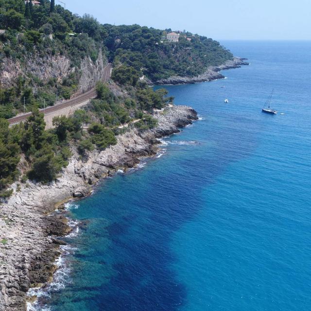A project of Thomas Rebutato, a fishing enthusiast, back in 1949, l’Étoile de mer is a small bistro , accessible from the customs path along the coast, frequented by walkers and bathers picnicking on the Buse beach. The nearest neighbor? Le Corbusier, future friend of the family. Like him, we are seduced by Thomas’s murals, almost art brut, which express his love for the sea. A terraced garden leads down to the sea. Inclusions of colored caissons and pebbles, plantings of succulents express the bohemian personality of the owner of the premises.