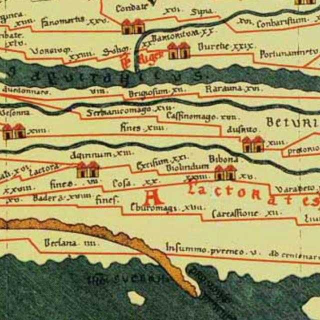 The table is made up of 11 parchments which measure a total of 6.82m long and 0.34m wide. It presents 200,000km of Roman roads including the famous Via Julia Augusta and La Turbie, called Alpis Summa. It depicts cities, seas, rivers, forests and mountain ranges. Major cities such as Rome, Constantinople and Antioch are highlighted by a decorated medallion.