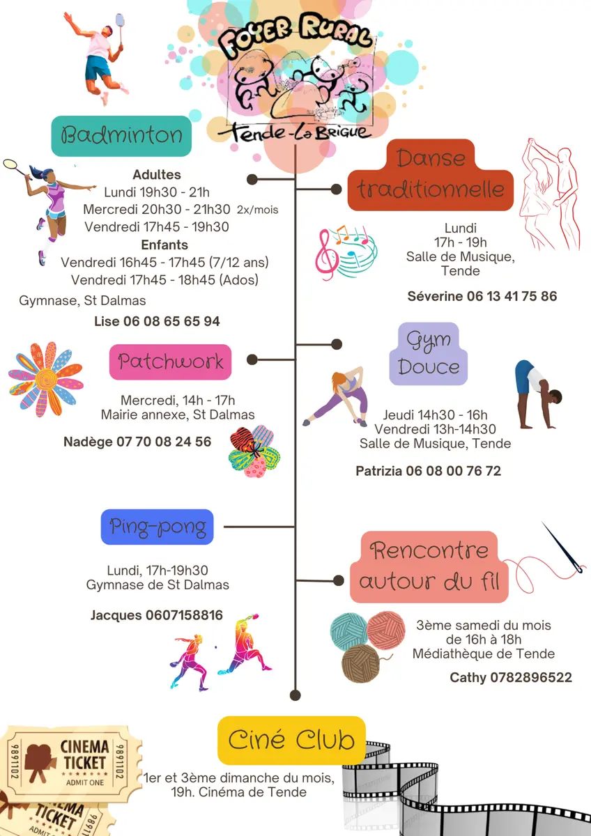 The rural home of Tende-La Brigue lives only by its members and the volunteers who run it. It offers regular weekly activities throughout the year: sports (gym, badminton, etc.), personal development (yoga, etc.), cultural (language learning, etc.) and creative leisure activities.